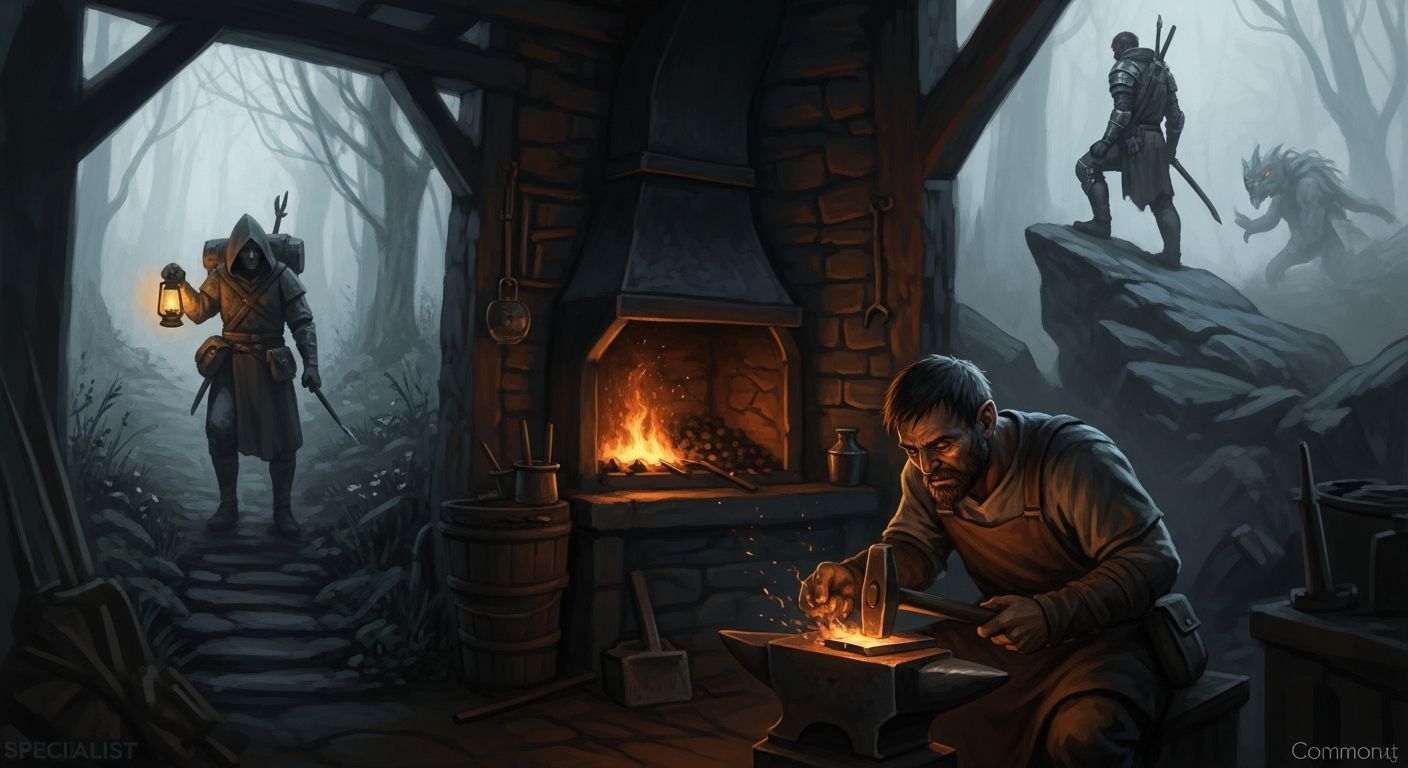However, the world is too broken for everyone to stay behind walls. Specialists are those whose skills force them into the margins—the Solitary Commoners who navigate the dangers of the wild. These are the guides who know which moss in the Duskfall Morass is safe to eat, the “Void-Caravaneers” who drive armored wagons through Anomaly zones, and the scavengers who risk the edges of the Wastes for salvage. They are often viewed with a mix of respect and suspicion; they are necessary for trade and communication between the isolated regions, yet their exposure to the outside world leaves them “tainted” in the eyes of the rigid Imperial order.